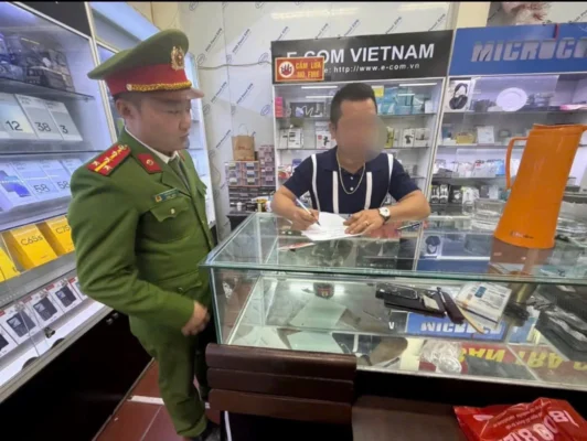 At 5:35 p.m. on December 22, 2025, a task force from the Administrative Police Department for Social Order (Hà Nội City Police), in coordination with Phù Đổng Commune Police, conducted an administrative inspection of Nguyễn Nam Electronics and Mobile Phone Store, located at Cầu Market, Trung Mầu Hamlet, Phù Đổng Commune, Hà Nội.