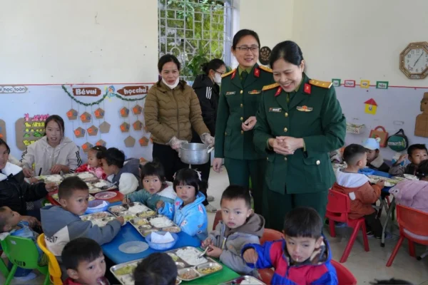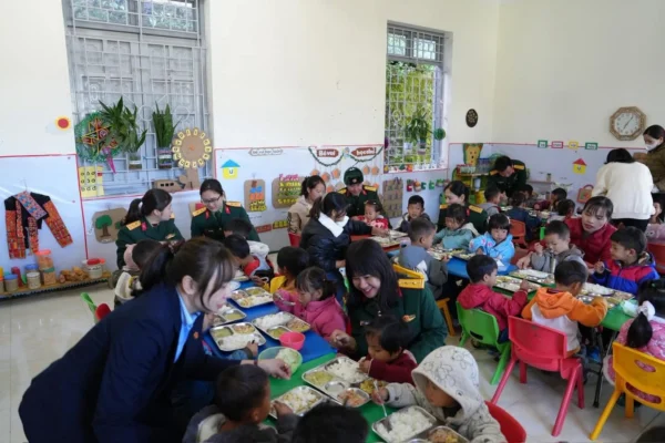 Trong khuôn khổ chương trình, Hội Phụ nữ Nhà máy Z121 đã phối hợp cùng nhà trường tổ chức “Bữa cơm nóng cho em” cho 218 cháu học sinh, với thực đơn đầy đủ dinh dưỡng gồm thịt, trứng, sữa…, góp phần cải thiện bữa ăn bán trú và nâng cao thể trạng cho các em.