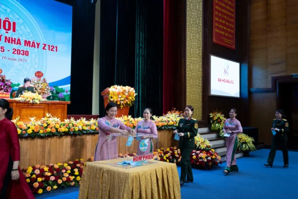 Với tinh thần trách nhiệm cao, Đại hội đã bầu Ban Chấp hành Hội Phụ nữ Nhà máy Z121 nhiệm kỳ 2025-2030 gồm 11 đồng chí với số phiếu tín nhiệm cao. Hội nghị Ban Chấp hành Hội Phụ nữ Nhà máy họp phiên thứ nhất đã bầu Ban Thường vụ gồm 3 đồng chí, đồng chí Đàm Thị Thu Lam-nhân viên Phòng Chính trị tiếp tục được bầu làm Chủ tịch Hội, đồng chí Nguyễn Hồng Nhung-nhân viên Xí nghiệp Pháo hoa tiếp tục được bầu làm Phó Chủ tịch Hội.