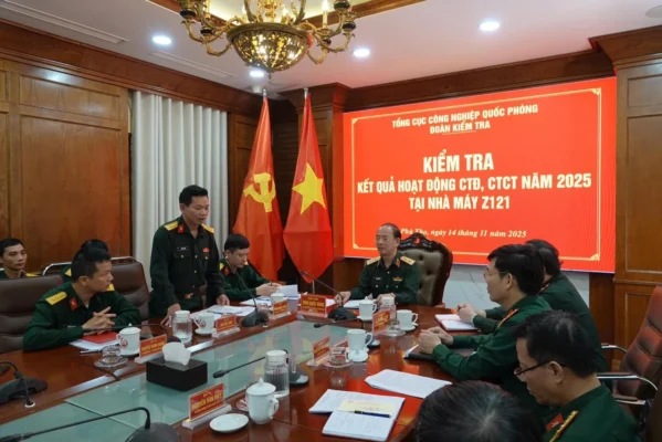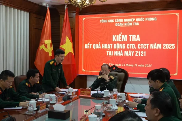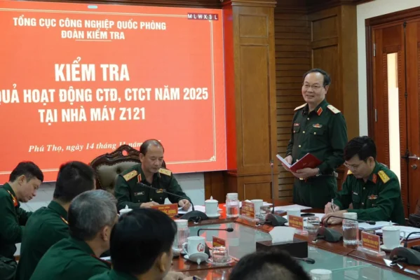 Ngày 14-11, tại Phú Thọ, đoàn kiểm tra của Tổng cục Công nghiệp Quốc phòng do Trung tướng Đinh Quốc Hùng, Bí thư Đảng ủy, Chính ủy Tổng cục làm trưởng đoàn đã tiến hành kiểm tra kết quả thực hiện công tác Đảng, công tác chính trị năm 2025 của Nhà máy Z121.