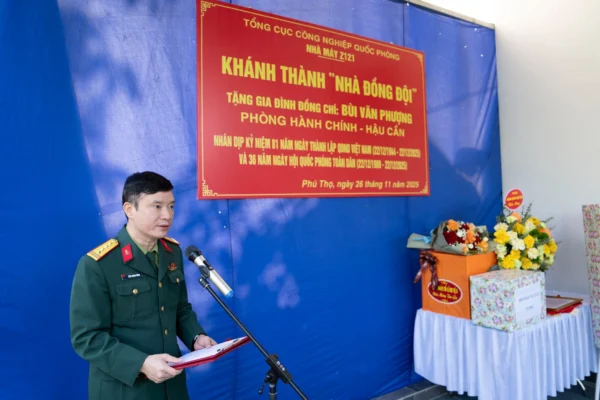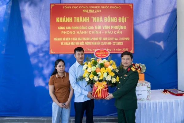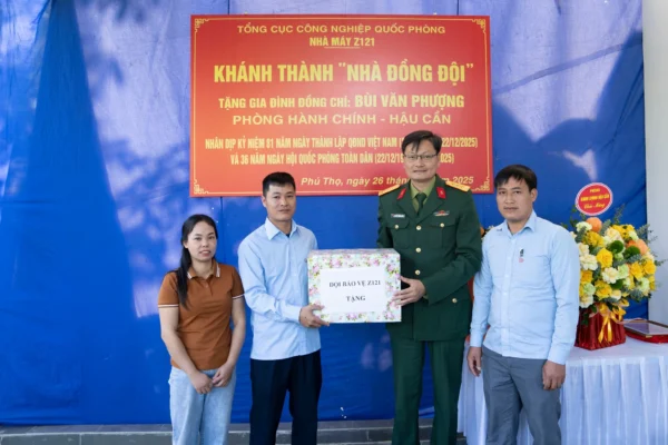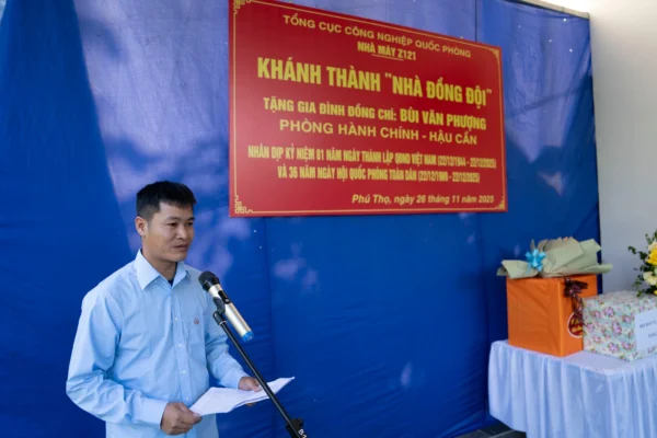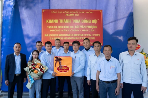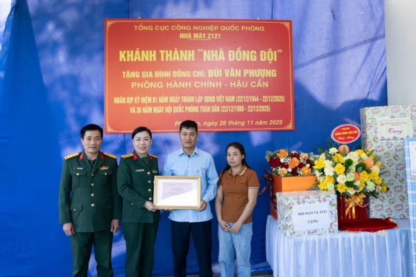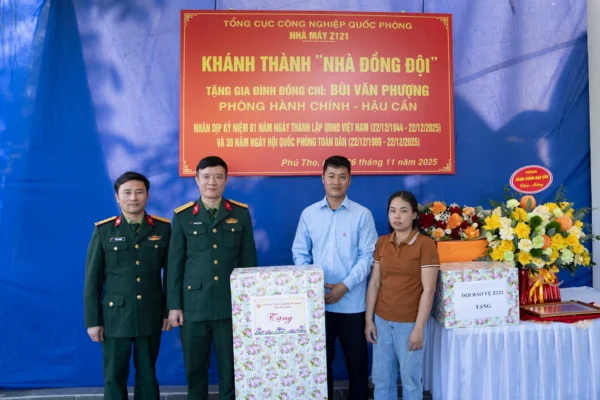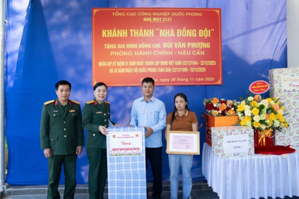 Chiều ngày 26/11/2025, Nhà máy Z121 đã tổ chức lễ khánh thành và bàn giao kinh phí hỗ trợ xây dựng “Nhà Đồng đội” cho gia đình đồng chí Bùi Văn Phượng – Nhân viên Cảnh vệ, Phòng Hành chính Hậu cần, Nhà máy Z121.
