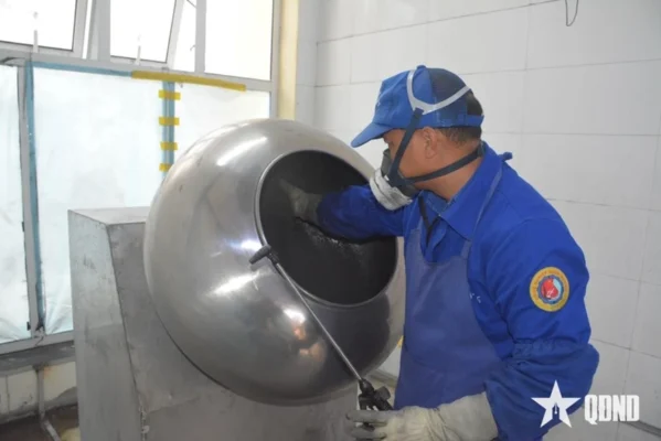 Công đoạn sản xuất viên màu. Khi đốt pháo hoa, các loại viên màu khác nhau sẽ tạo hiệu ứng ánh sáng khác nhau.
